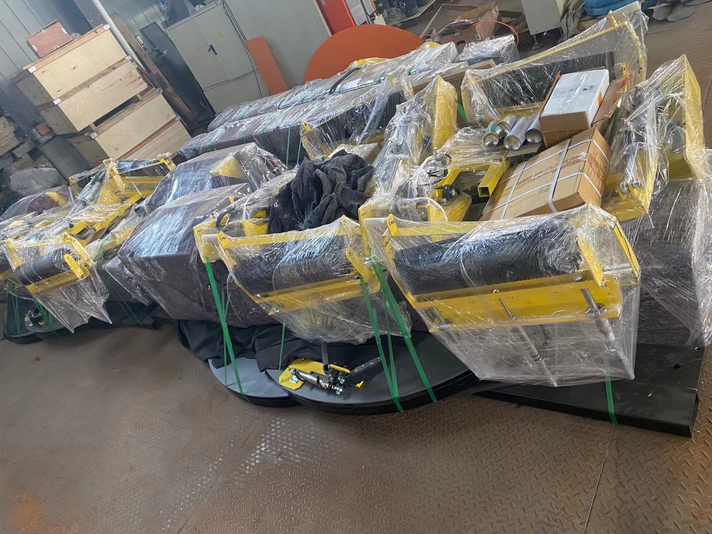 單機全自動上斷膜纏繞機打包完畢,待裝貨柜,去國外